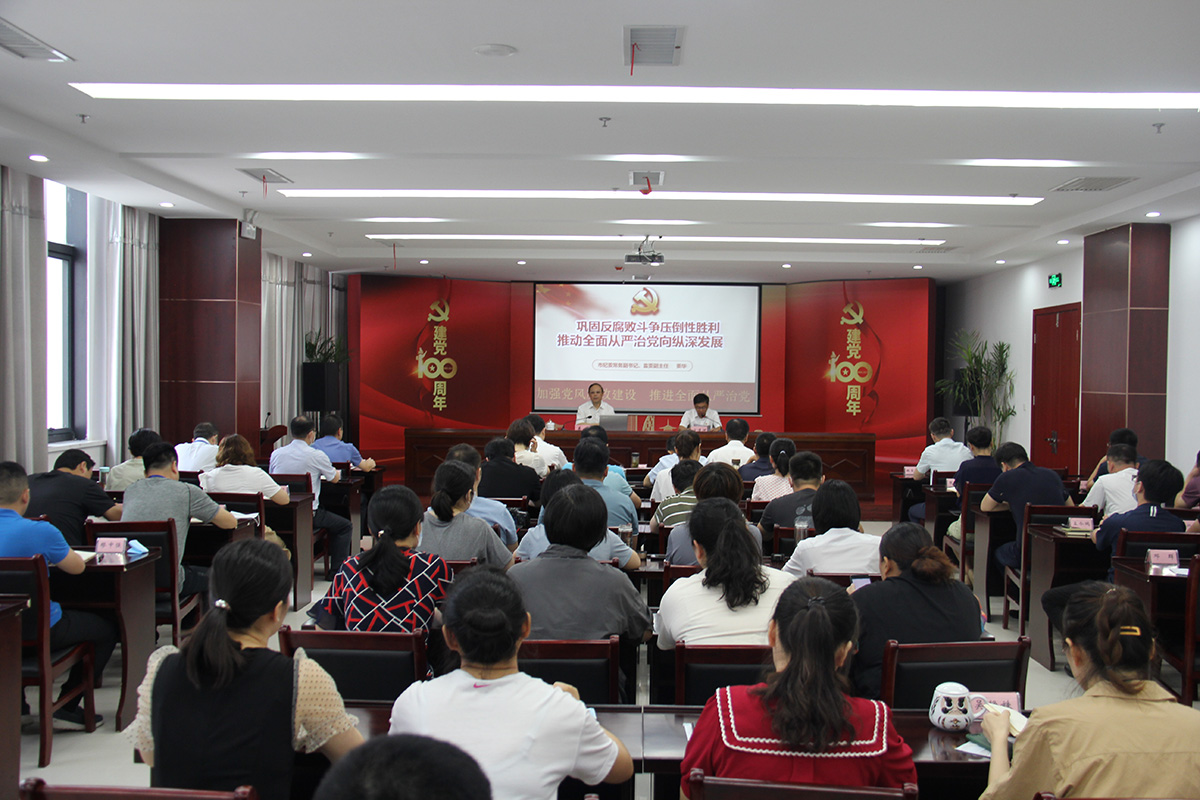 為持續(xù)深化全面從嚴(yán)治黨向縱深推進(jìn),切實(shí)增強(qiáng)黨員干部紀(jì)律意識(shí)和規(guī)矩意識(shí),為高質(zhì)量轉(zhuǎn)型發(fā)展提供堅(jiān)強(qiáng)政治保障和組織保障。7月23日上午,公司黨委邀請(qǐng)市紀(jì)委常務(wù)副書記、市監(jiān)委副主任姜華作黨風(fēng)廉政建設(shè)教育專題講座。黨委副書記、副董事長、總經(jīng)理宋道河主持會(huì)議,班子成員,全體黨員干部職工和二級(jí)機(jī)構(gòu)負(fù)責(zé)人參加會(huì)議。