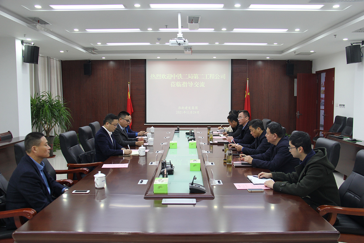 11月24日上午,中鐵二局第二工程有限公司華東區(qū)域副指揮長闕輝一行到訪淮南建發(fā)集團。集團公司黨委副書記、副董事長、總經(jīng)理宋道河,黨委委員、董事、副總經(jīng)理韓雪冰、宮福頂出席座談會,雙方就項目建設、經(jīng)營合作等方面進行深入交流。