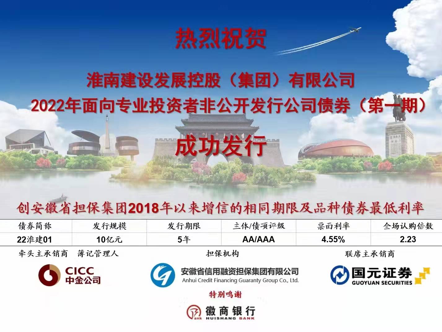 1月12日,建發(fā)集團成功簿記發(fā)行公司首單非公開發(fā)行公司債券,債券簡稱:20淮建01、發(fā)行規(guī)模10億元、票面利率4.55%,安徽省擔保公司對債項增信擔保,認購倍數(shù)達2.23倍。
