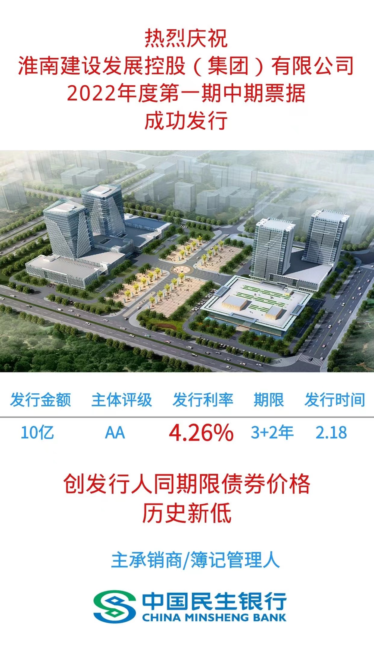 2月17日,建發(fā)集團(tuán)成功簿記發(fā)行2022年度首單中期票據(jù),債券簡稱:22淮南建發(fā)MTN001、發(fā)行規(guī)模10億元、票面利率4.26%、認(rèn)購倍數(shù)達(dá)2.4倍。
