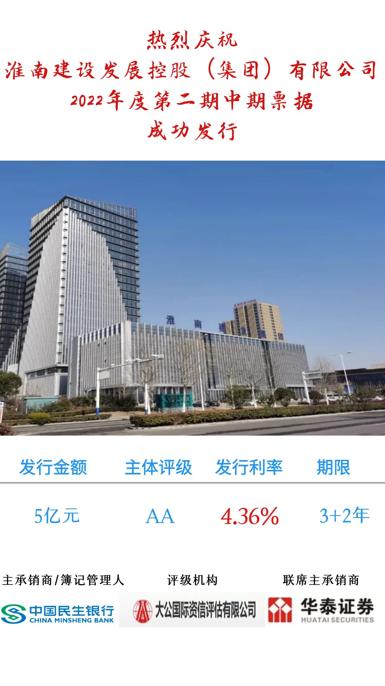 發(fā)行要素:22淮南建發(fā)MTN002、發(fā)行規(guī)模5億元、票面利率4.36%、認(rèn)購倍數(shù)1.8倍。