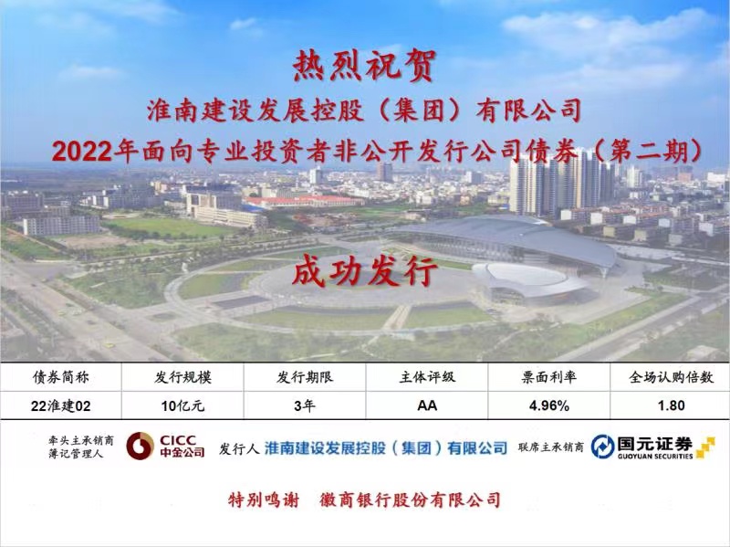 3月9日,建發(fā)集團(tuán)成功簿記發(fā)行2022年度第二期非公開(kāi)發(fā)行公司債券,債券簡(jiǎn)稱:22淮建02、發(fā)行規(guī)模10億元、票面利率4.96%,認(rèn)購(gòu)倍數(shù)1.8倍。
