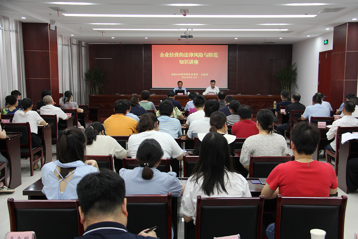 為深入學習貫徹習近平總書記全面依法治國新理念新思想新戰(zhàn)略,嚴格控制法律風險,提升企業(yè)法制意識,提高國有企業(yè)“依法治企”水平,建發(fā)集團于8月19日下午開展了企業(yè)經營的法律風險和防范知識培訓。本次培訓邀請到公司法律顧問、安徽從法律師事務所主任史愛國律師來公司為全體干部員工作專題法律講座。會議由集團公司副總經理韓雪冰主持,集團公司全體干部員工參加了培訓。