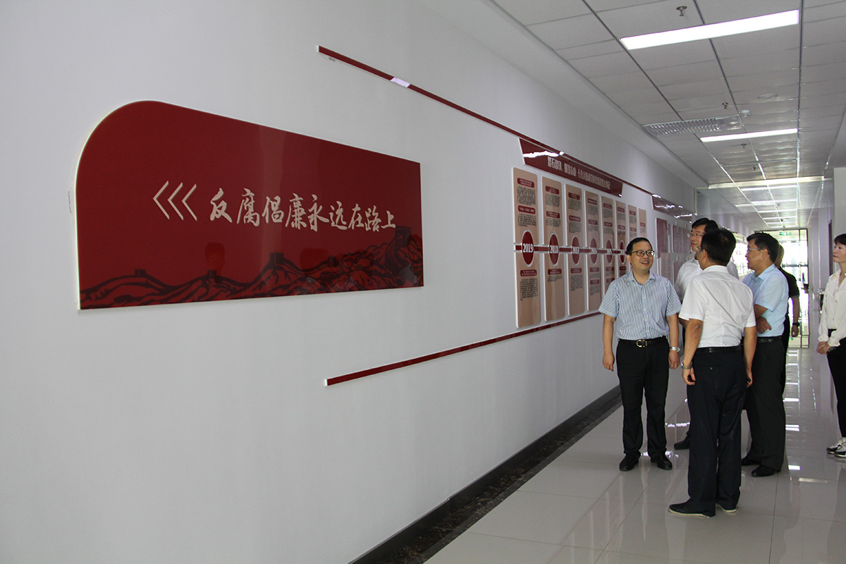 調(diào)研中,督導(dǎo)組一行現(xiàn)場查看了集團公司黨建廉政文化長廊、黨員活動室等陣地建設(shè)情況,隨后聽取了集團公司“清廉國企”建設(shè)工作情況匯報。