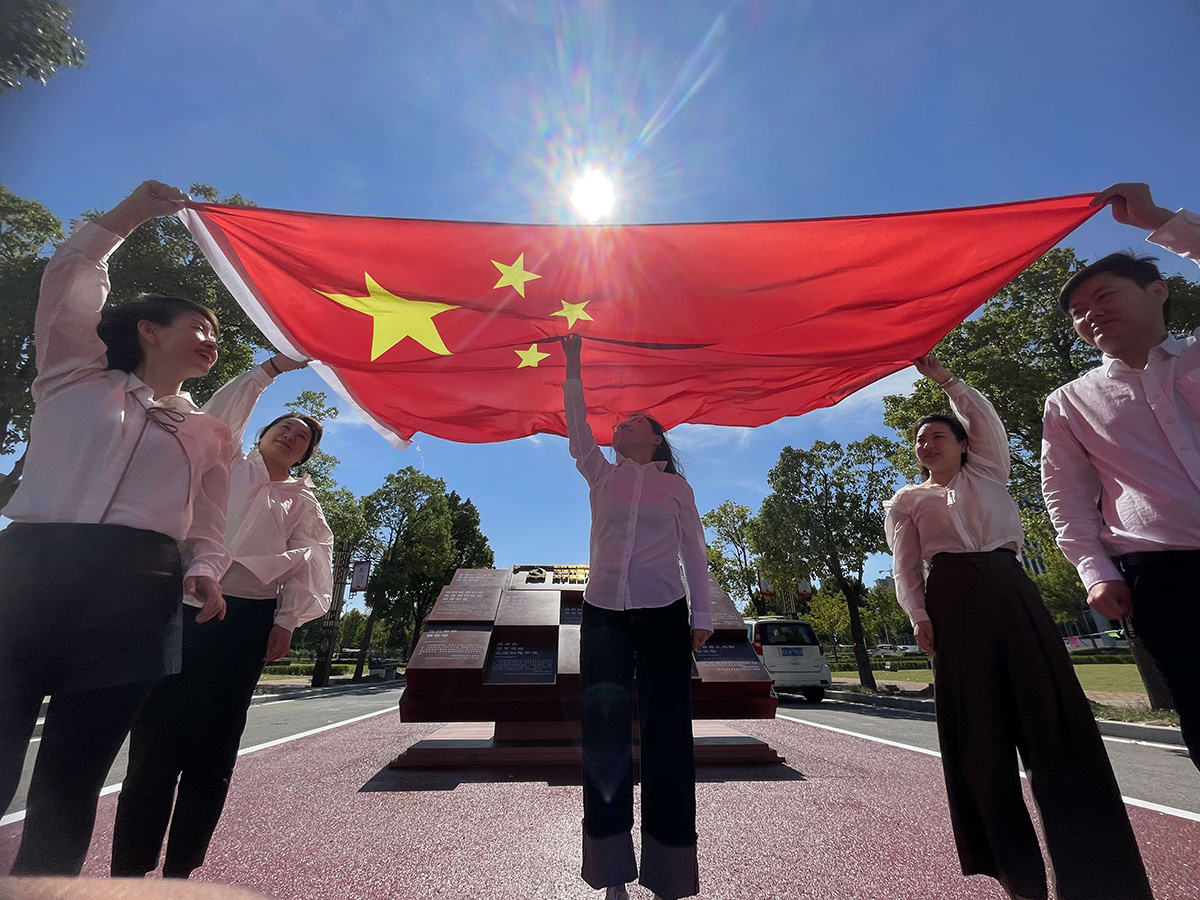 金秋十月晴空萬里,鮮紅的國旗迎風飄揚,為了熱情謳歌新時代喜迎祖國73歲生日,建發(fā)集團到處輝映著“中國紅”。主題黨日這天,全體黨員更是用鏡頭記錄下與國旗同框的美好瞬間,進行著生動又深刻的愛國主義教育,一張張笑臉洋溢著對祖國的熱愛,暖暖的愛國心感染著在場的每個人。新黨員趙博說:“國旗是國家的象征,是億萬人民心中的信仰,與國旗親密合影,讓我深深感到作為一名中國人、一名中共黨員的無比自豪。”