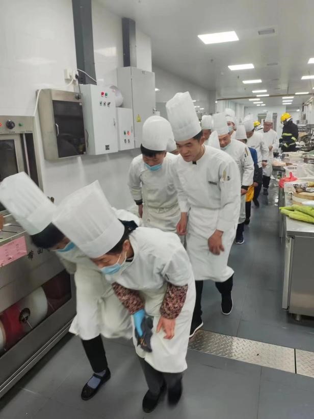 為了進(jìn)一步強(qiáng)化酒店員工消防安全意識,提高突發(fā)事件的應(yīng)變能力,能夠迅速有組織的安全疏散,掌握正確使用滅火器以及逃生的方法,2月13日,淮南迎賓館組織員工在主廚房進(jìn)行了消防滅火疏散演習(xí)。