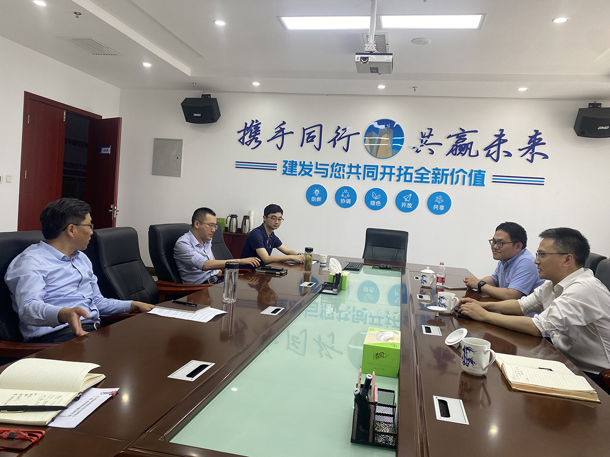 4月18日上午,國家開發(fā)銀行安徽分行客戶一處處長葛偉一行到訪建發(fā)集團,集團黨委書記、董事長宋道河主持會議,黨委委員、副總經(jīng)理欒冰冰參加會議,雙方開展交流座談。