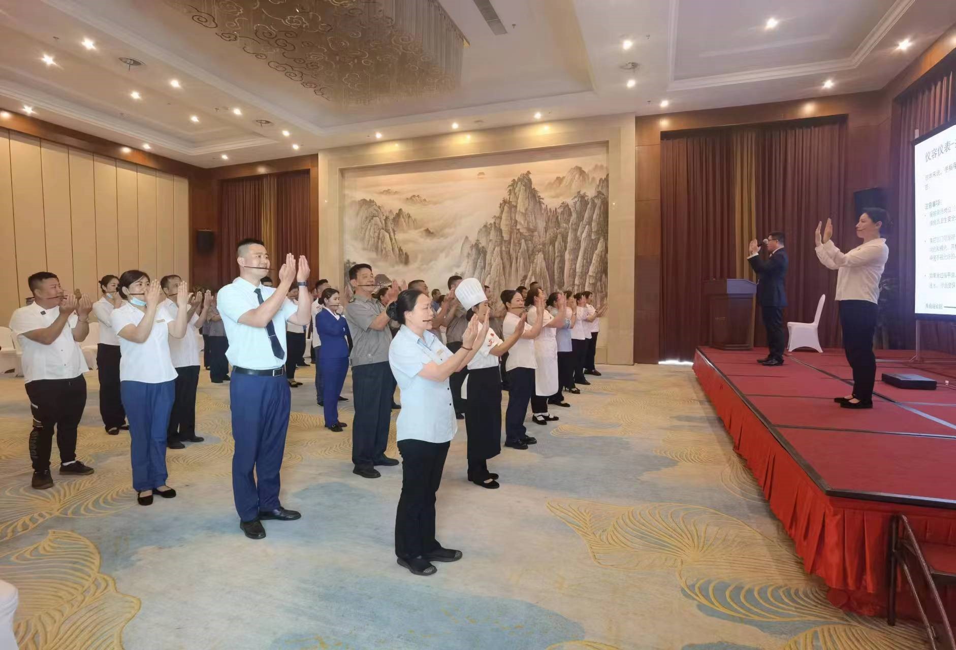 活動(dòng)內(nèi)容分為宣傳、“迎賓有禮”專業(yè)化塑造、“崗位有我”責(zé)任意識(shí)和服務(wù)意識(shí)提升和成果驗(yàn)收四個(gè)階段,6月12日至6月26日為專業(yè)化塑造階段,行政人事部組織酒店員工分四批集中進(jìn)行形體動(dòng)作、儀容儀表、禮貌禮節(jié)培訓(xùn),建立酒店統(tǒng)一標(biāo)準(zhǔn)。